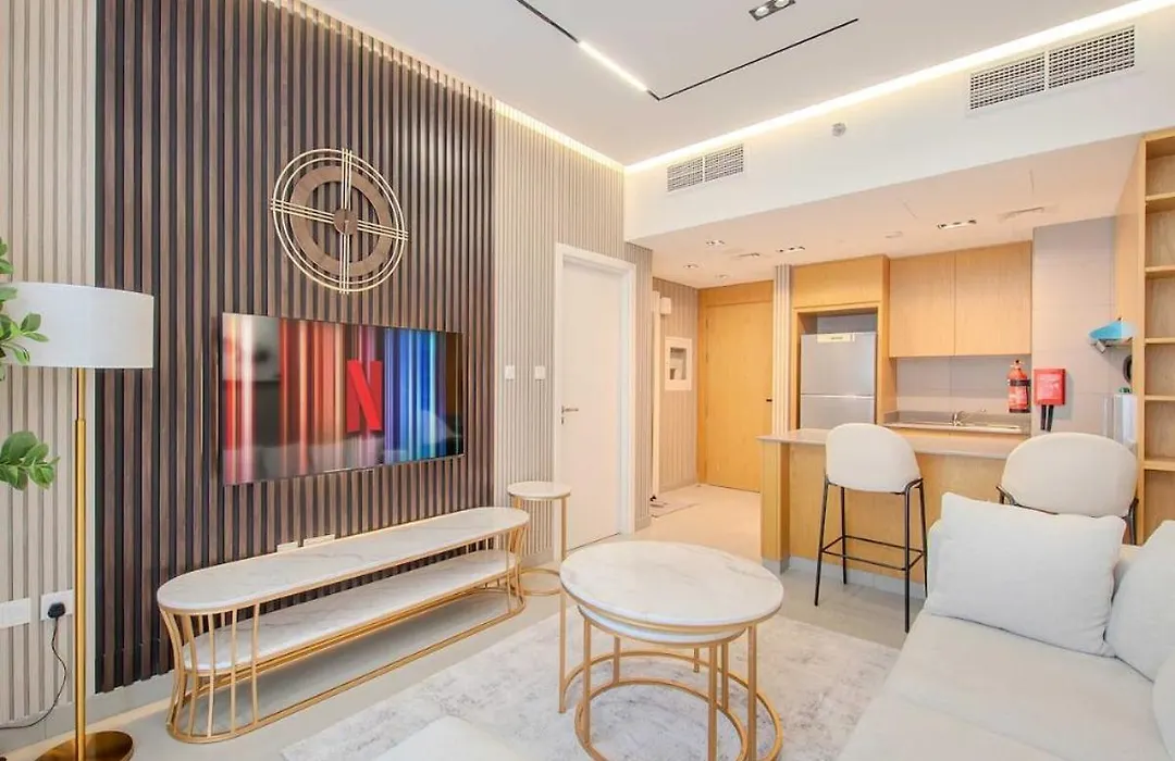 W 1Br Marbella Apartment With Living At Al Mamsha Goście mają do dyspozycji miejsce do pobytu dziennego z klimatyzacją. Dla większej wygody w apartamencie dostępne są bidet i oddzielna toaleta. Ponadto w łazience znajduje się bezpłatne kosmetyki i ręczniki.